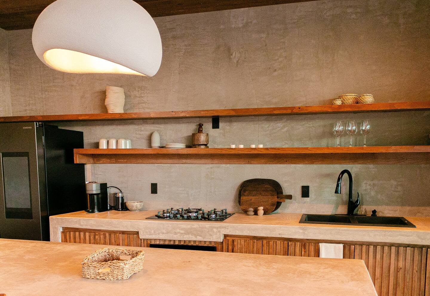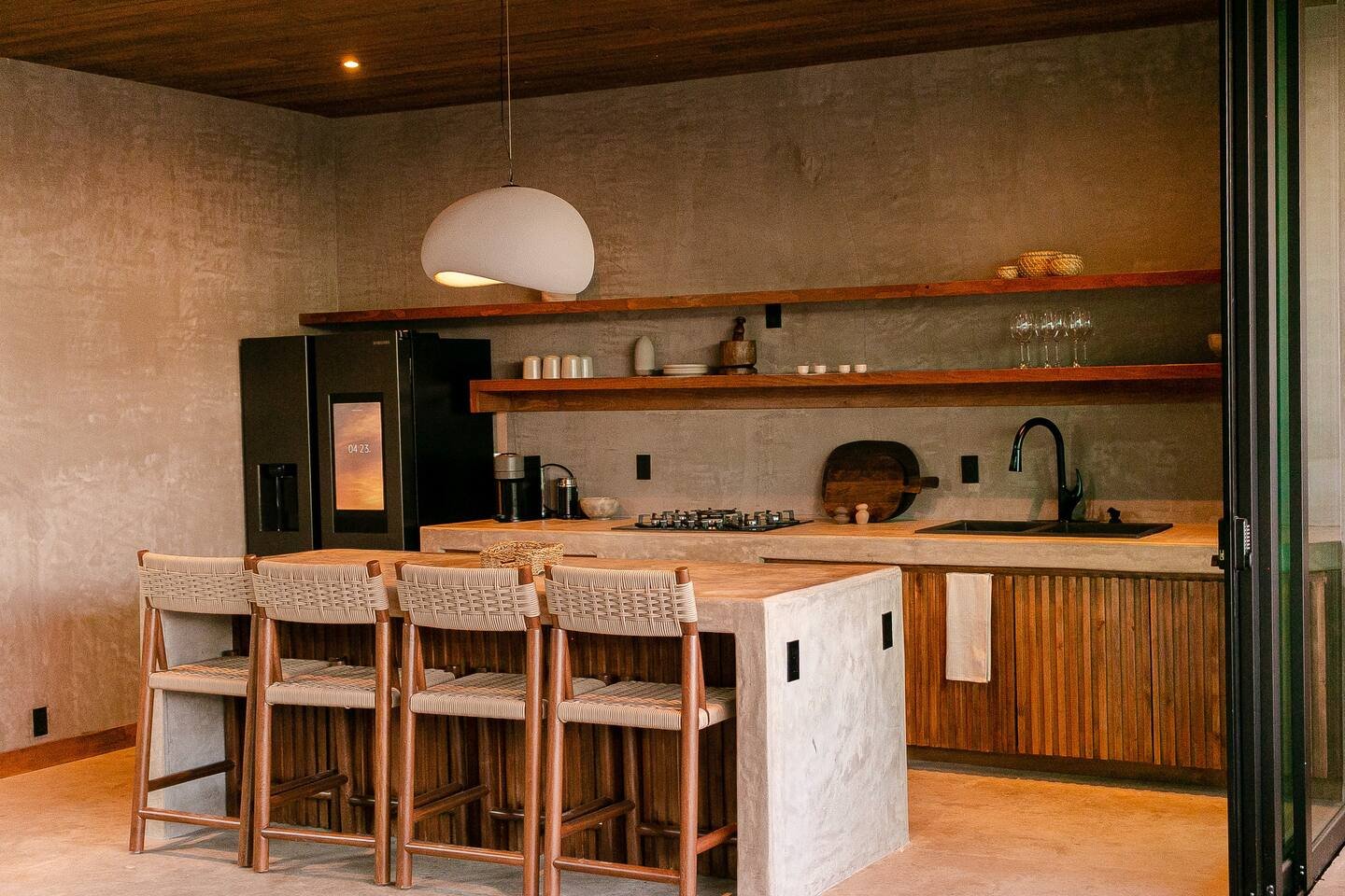 Equipada con electrodomésticos de alta gama, la cocina cuenta con vajilla y cristalería, ideal para quienes deseen organizar una cena privada o una cata de vinos en la comodidad de la villa.