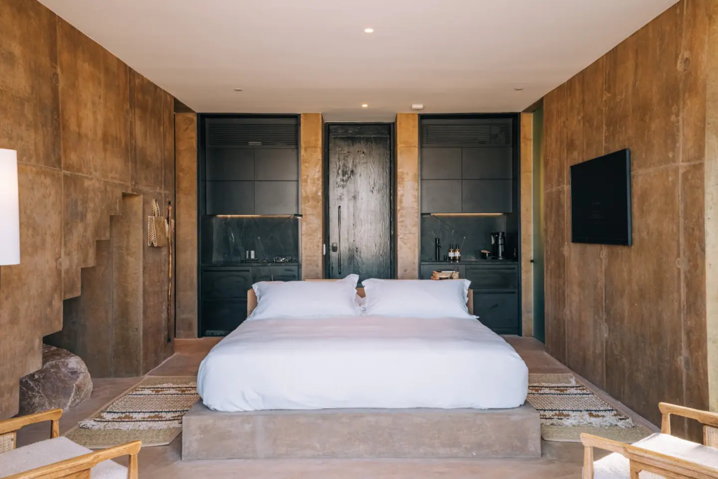 Las cabañas de lujo del Folly Mojave están diseñadas para maximizar la belleza natural del desierto, con grandes ventanales que ofrecen vistas panorámicas. Las terrazas privadas son perfectas para disfrutar de noches bajo las estrellas, con una atmósfera de paz y aislamiento. El diseño arquitectónico del hotel está cuidadosamente planeado para mezclarse con el entorno, utilizando materiales sostenibles que preservan la estética y el ecosistema natural.